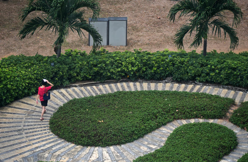 A woman covering herself from the sudden rain near City Square Mall at about 1.40pm on Sept 23, 2019.