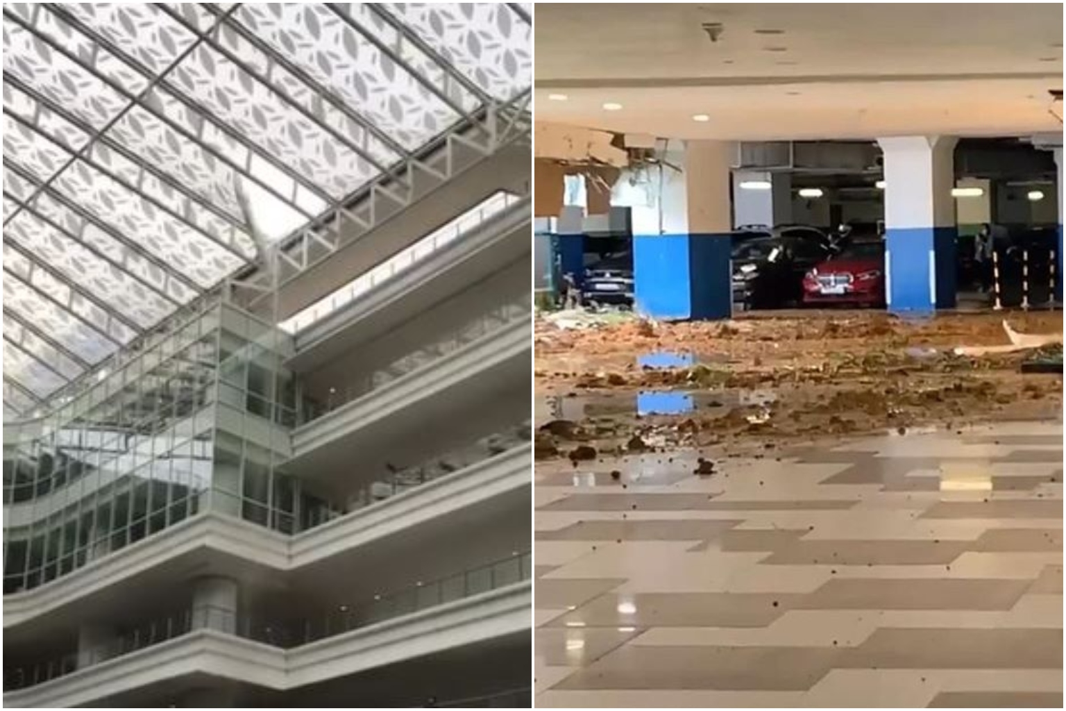 Videos of the incident posted on Instagram account Sgfollowsall showed onlookers watching as water poured from above while the sound of heavy rain could be heard outside.