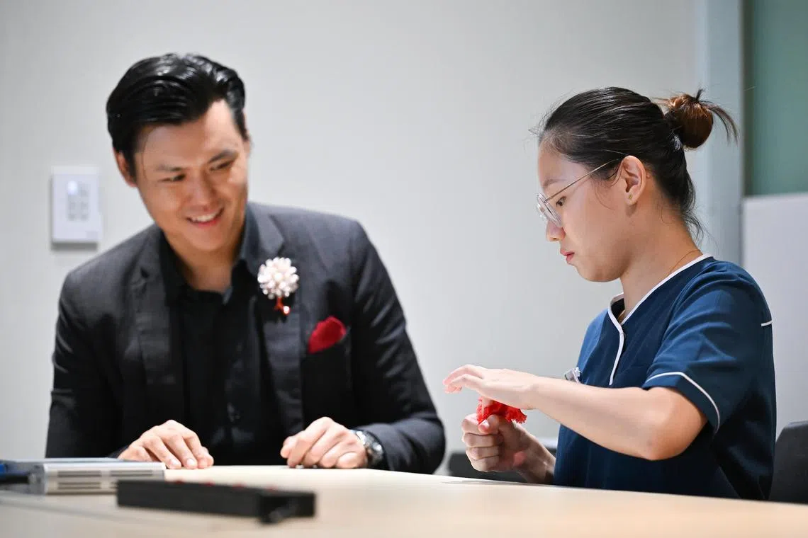 Senior staff nurse Toh Kai Ting, 26, is among the 26 TTSH staff who went through about five sessions of magic lessons with Mr Yuen, as part of the hospital’s Namaste Care Plus programme for dementia patients.
