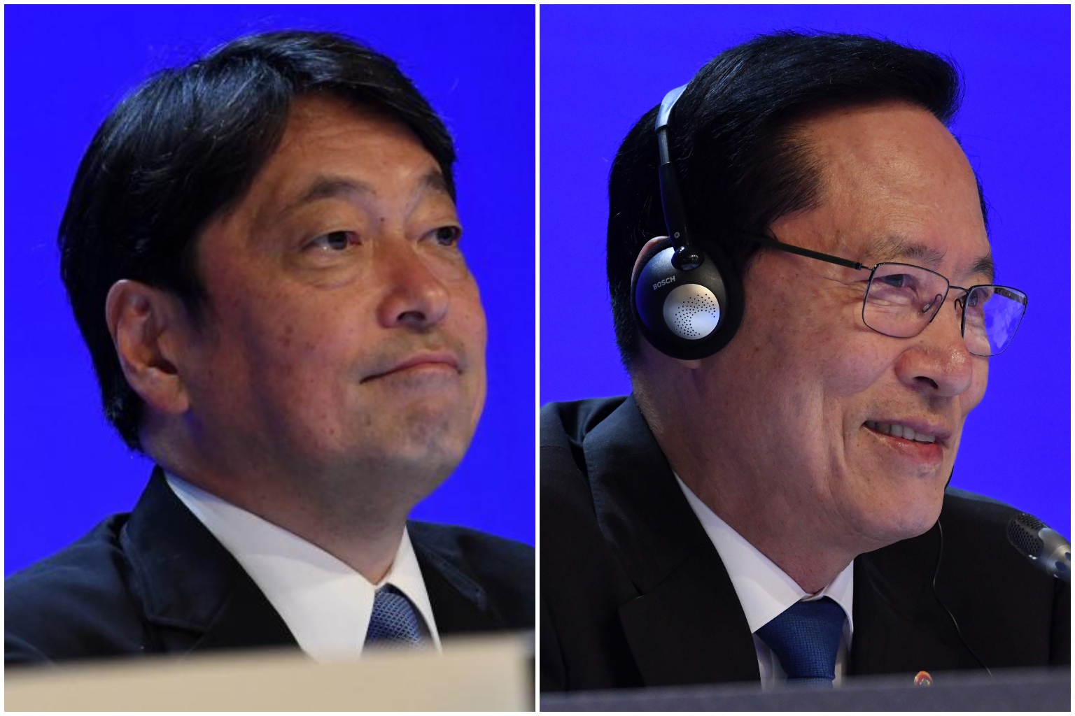 Japan's Defence Minister Itsunori Onodera (left) said North Korea must not be rewarded for agreeing to dialogue, while his South Korean counterpart Song Young Moo said dialogue will never make progress if the focus was on disagreement.