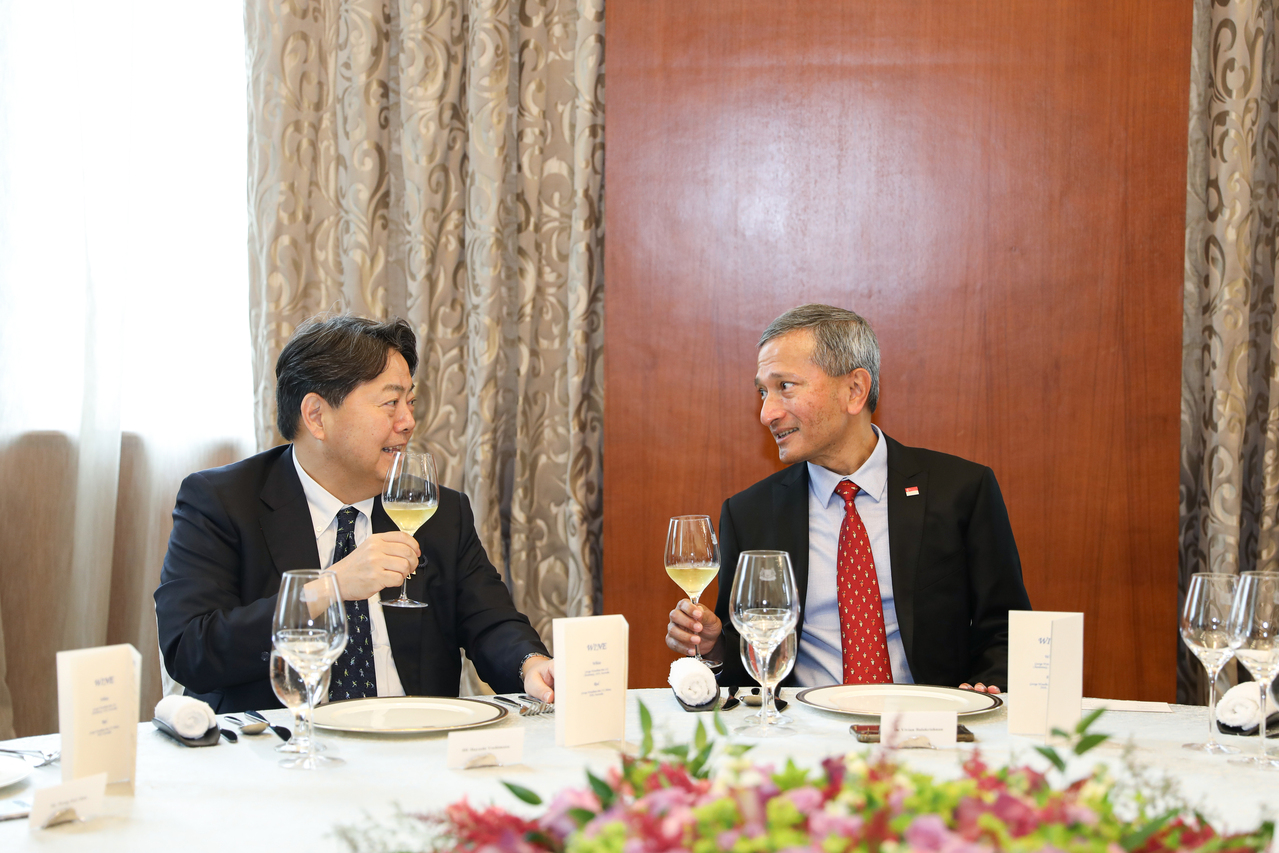 Japanese Foreign Minister Yoshimasa Hayashi being hosted to lunch by his counterpart Vivian Balakrishnan.