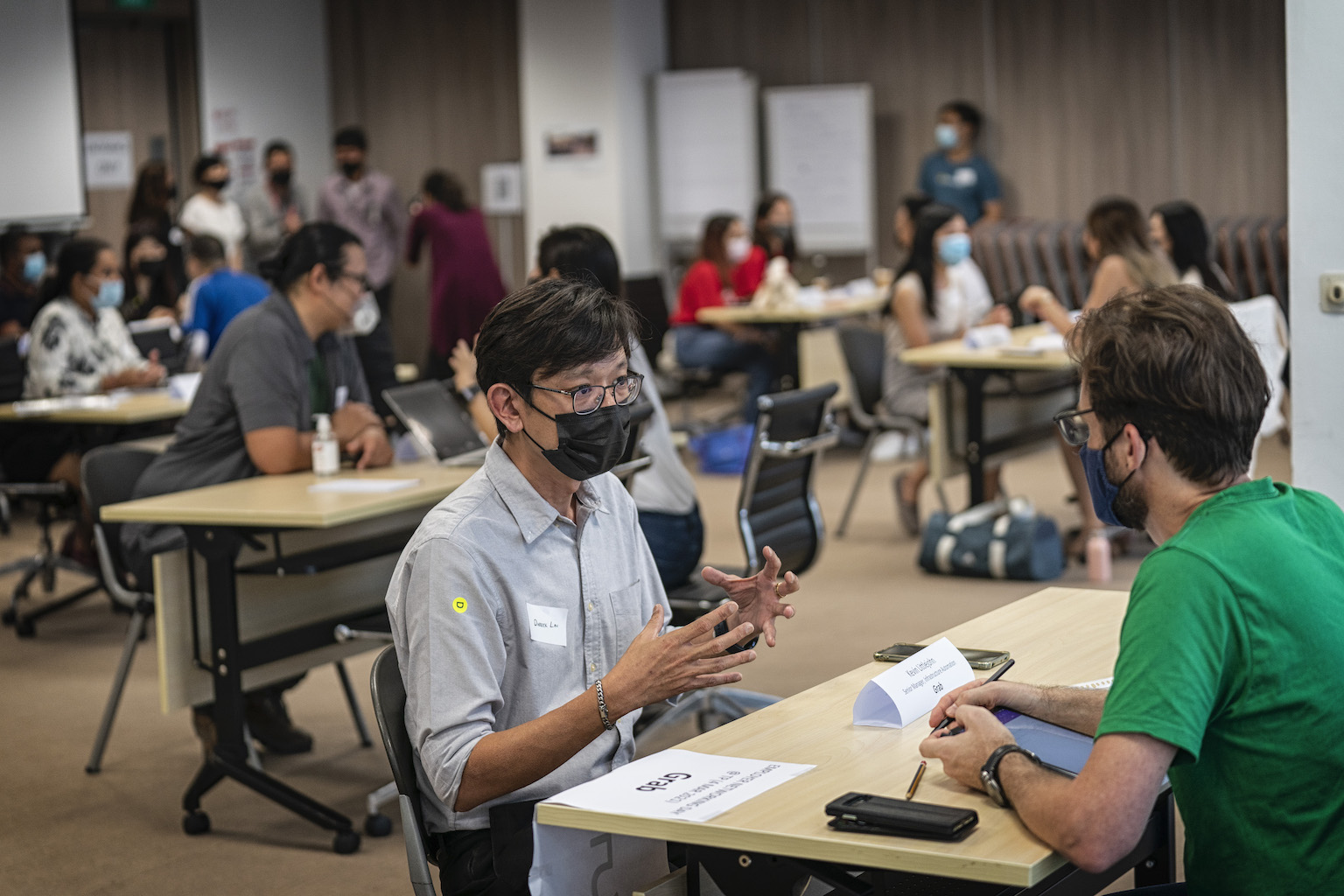Group presentations to prospective employers took place in the morning. Lunch was followed by a frenetic three hours of job interviews. Students went table to table in 15-minute blocks - not unlike speed-dating - for one-on-one interviews with seven recruiters, including two from Grab.