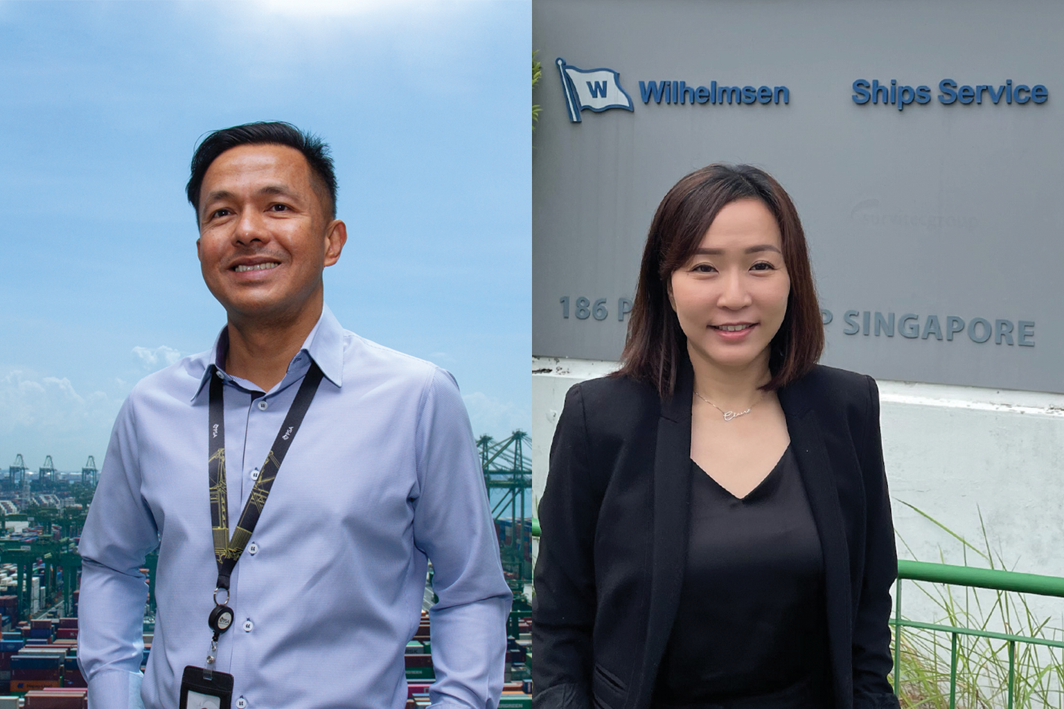 Mr Damian Ong and Ms Claire See had no background in the maritime industry, but both relished the challenges of stepping into new roles and have since gone on to enjoy rewarding careers in their respective roles. PHOTOS: PSA SINGAPORE, CLAIRE SEE