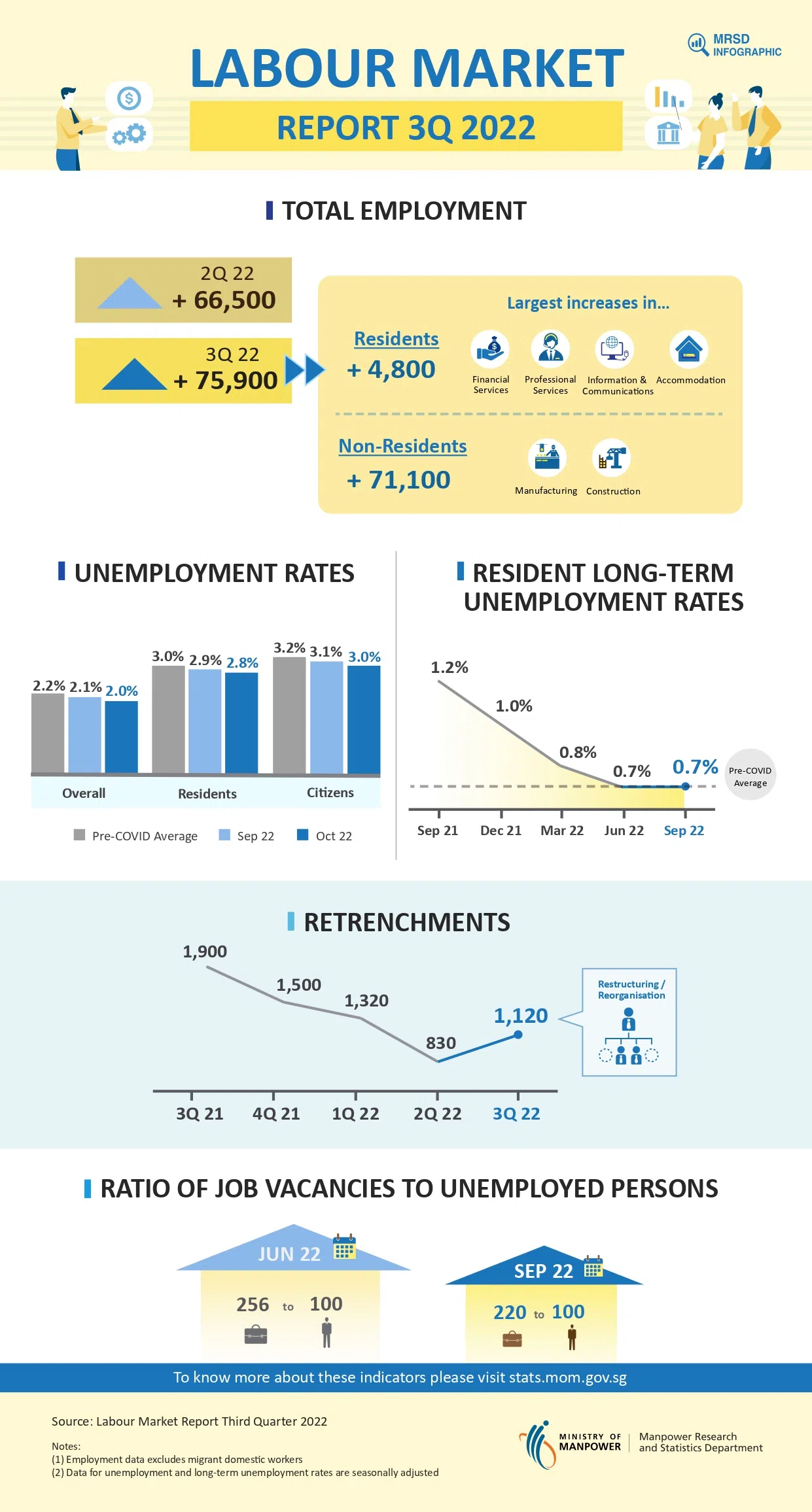 The resident unemployment rate clocked 2.8 per cent in October 2022, remaining within the pre-Covid-19 range.