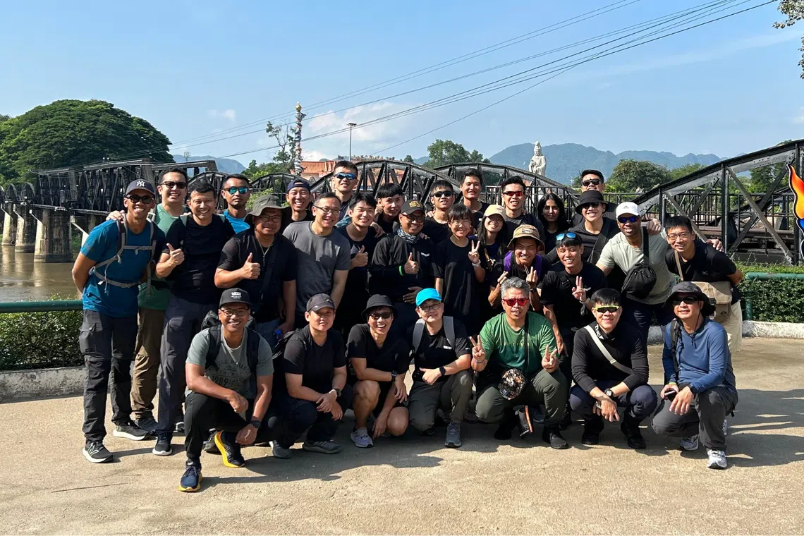 As part of his nine-month training, Mr Tan (top row, third from left) got the chance to go to Kanchanaburi, Thailand, for a climbing expedition to hone leadership skills.