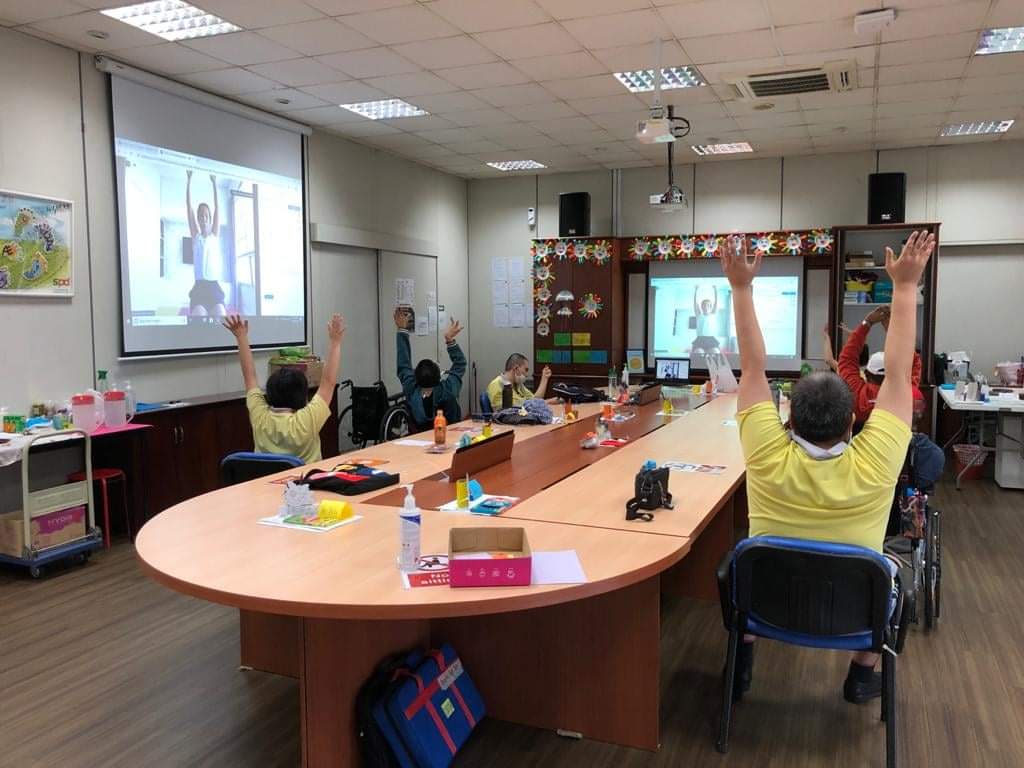 Staff from Certis engaging clients from Society for the Physically Disabled in a virtual fitness session.