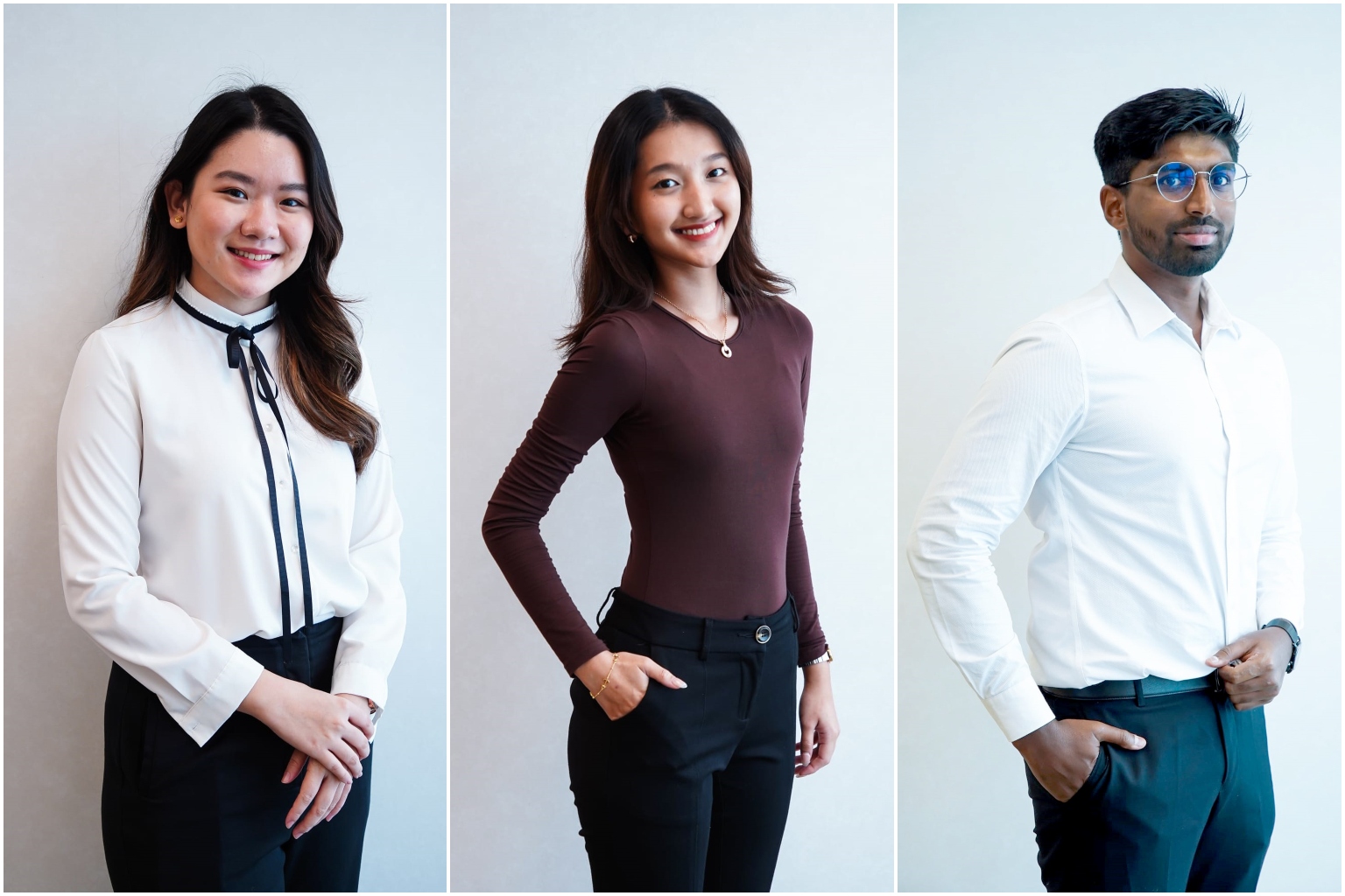 (From left) MaritimeSG Youth Ambassadors Ms Lovine Tan, Ms Sarah Sharieff and Mr Katiravan Suparmaniam.