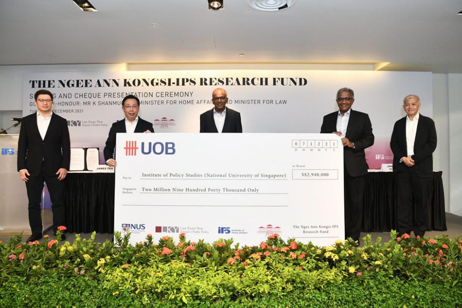 Minister for Home Affairs and Law K. Shanmugam, who was the guest of honour at the cheque presentation ceremony on Tuesday (Dec 7), reaffirmed the importance of IPS' work in policymaking and the role of philanthropic organisations such as Ngee Ann Kongsi.