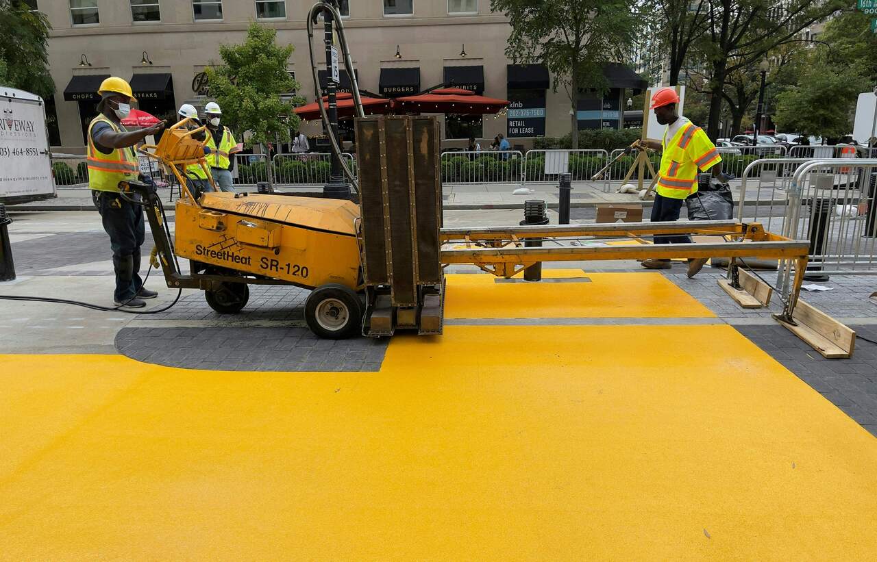 City workers repainting Black Lives Matter Plaza in Washington last month.