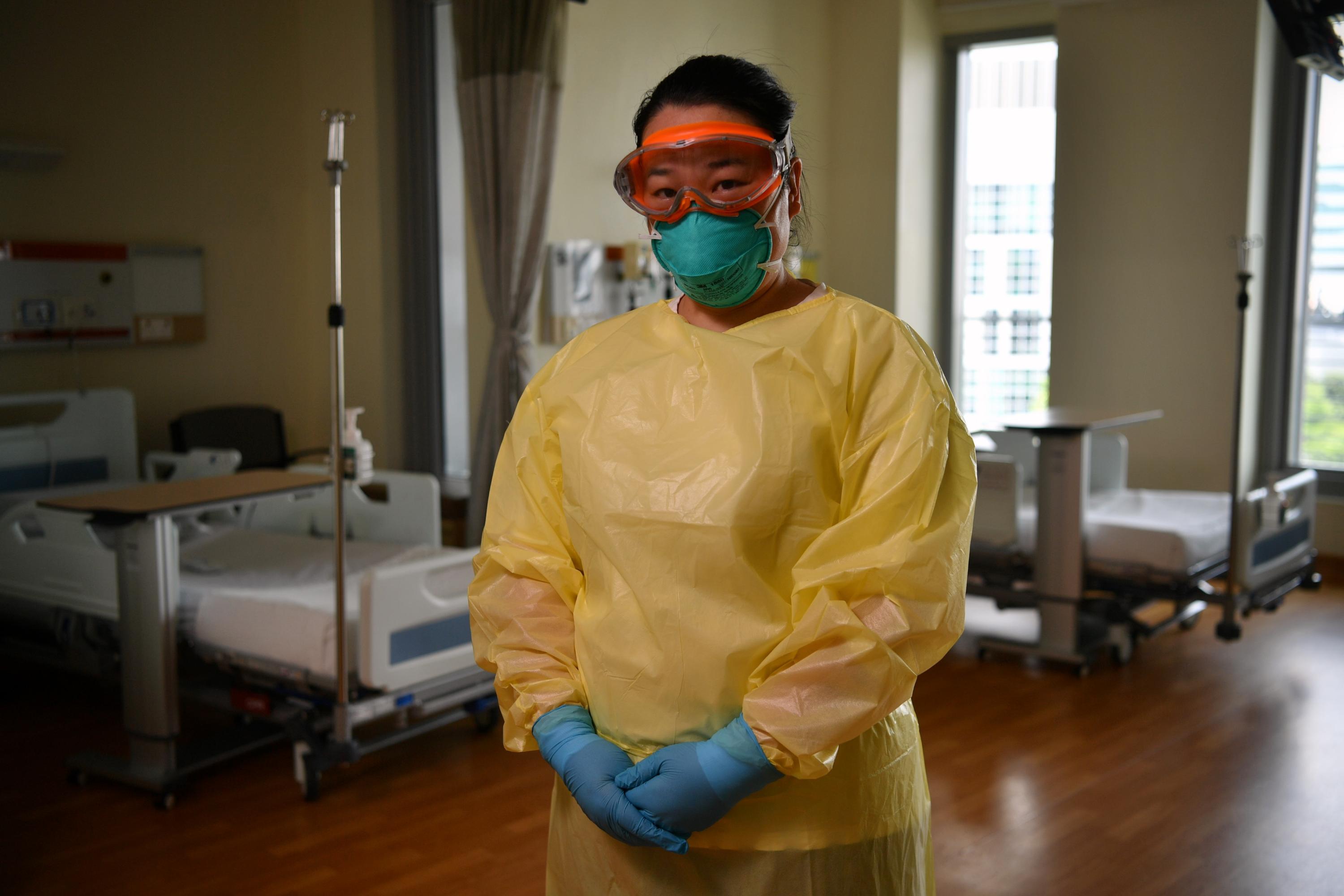 Assistant nurse clinician Guo Sasa in full personal protective equipment at Ng Teng Fong Hospital, on Jan 26, 2022.