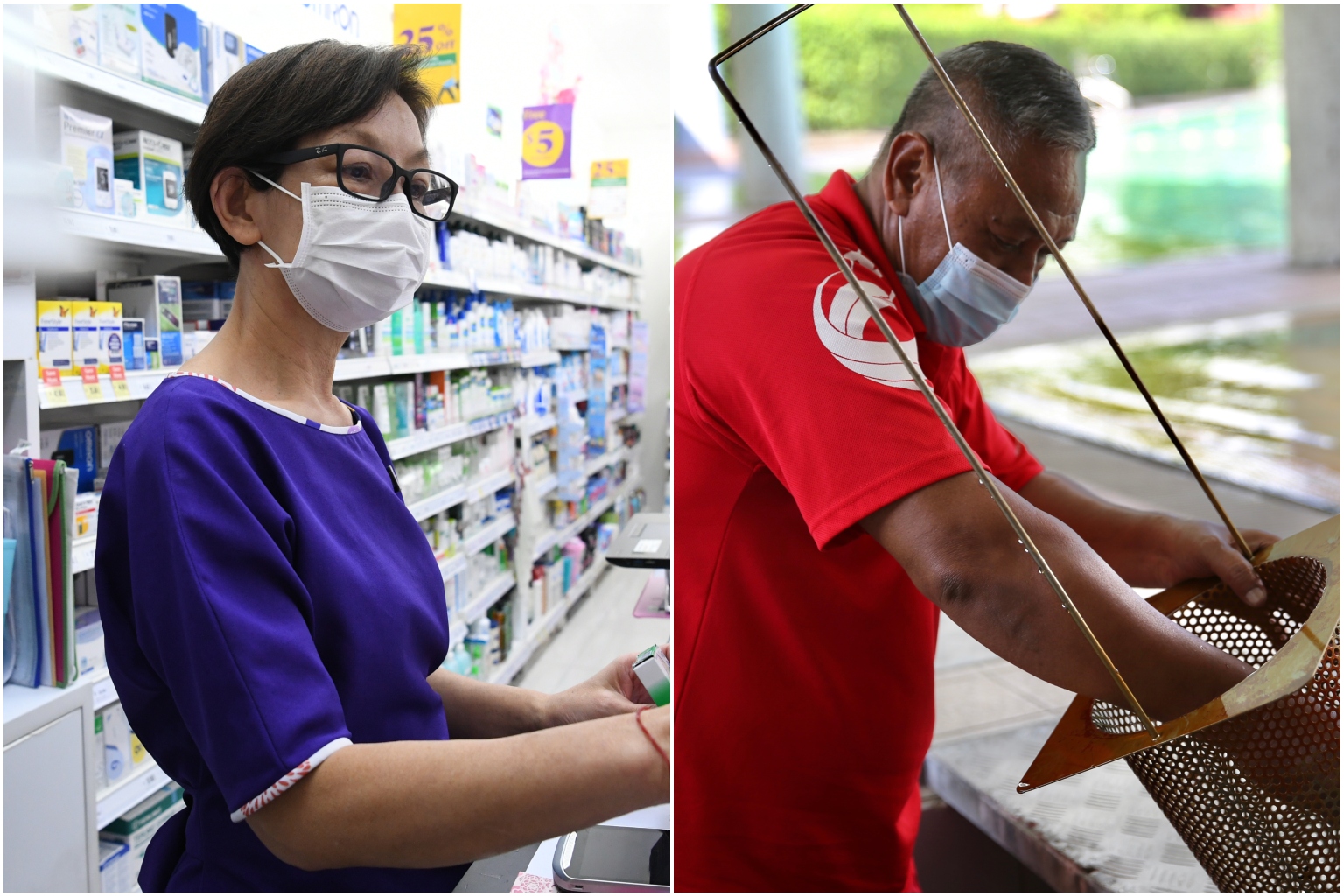More seniors here continue to be employed, including pharmacy supervisor Adeline Loh and swimming pool operator Jalalludin Ibrahim.