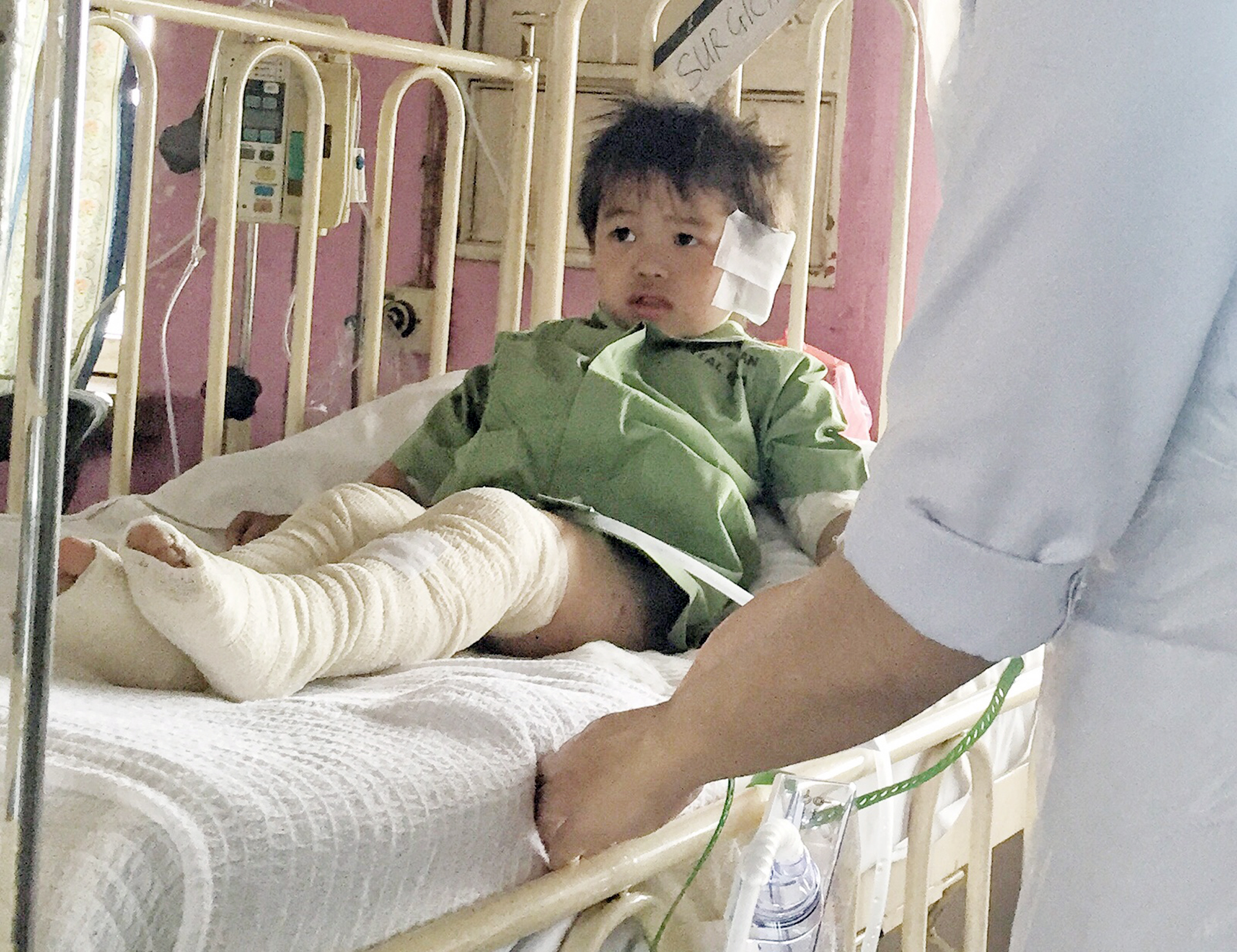 Three-year-old Evan suffered 9 per cent burns on his body, but is not in danger.