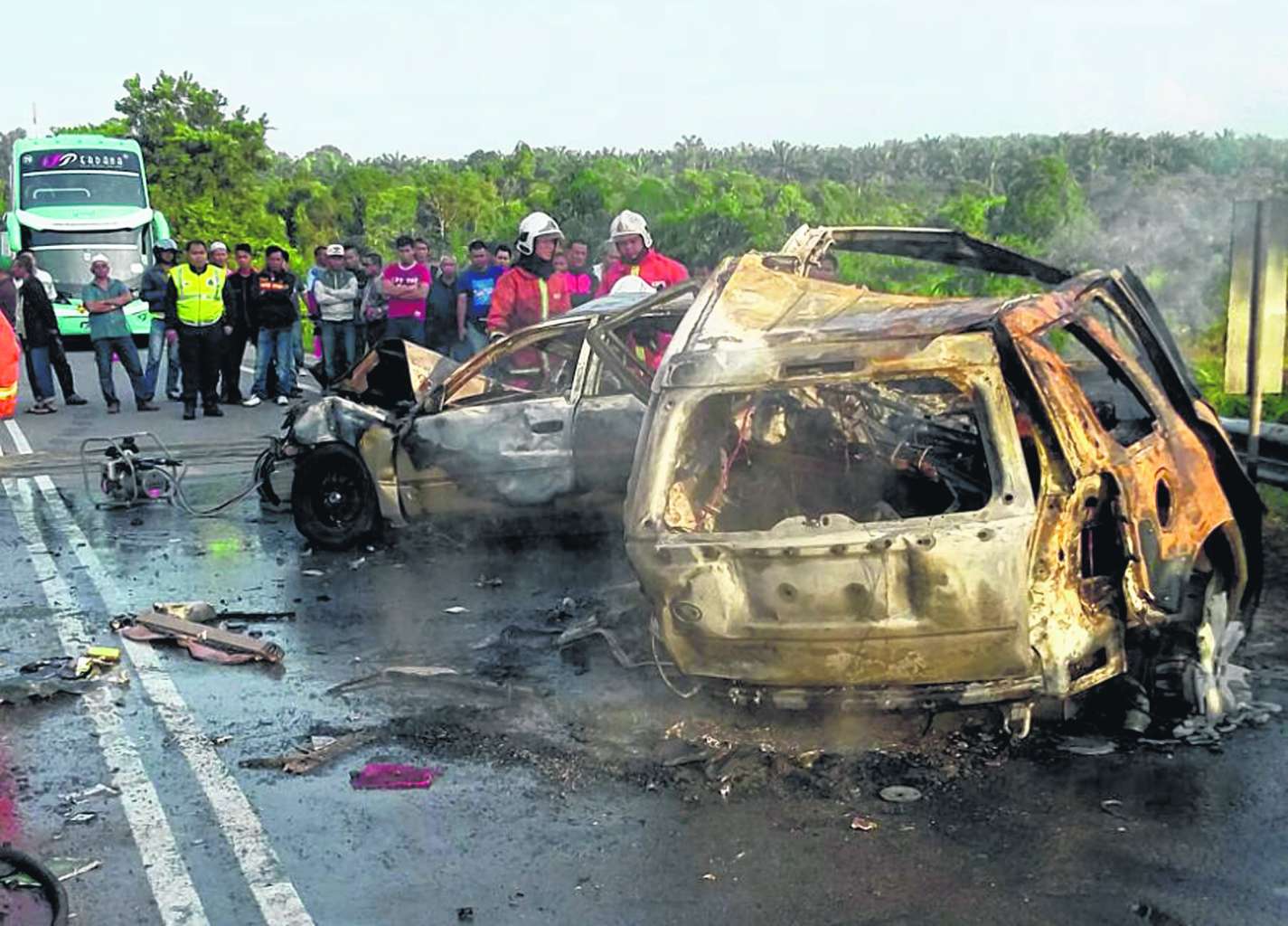 Scene of the horrific car crash in Johor on Friday, Dec 25, 2015.