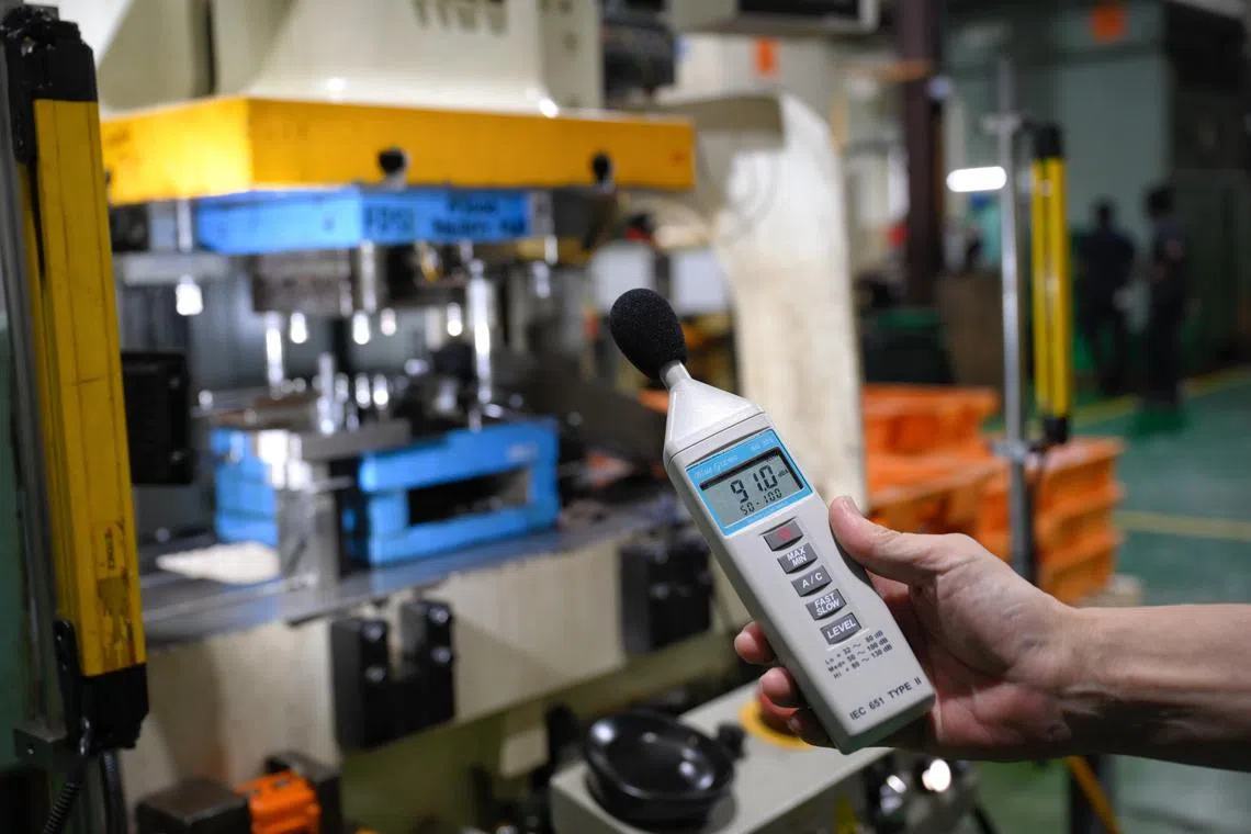 Ms Jaime Lim, director of the occupational safety and health specialist department at MOM, said employers are required to set up measures to control sources of noise and get workers to go for annual hearing tests if their workplace noise levels exceed normal volumes.