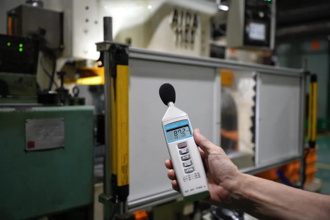 Nakano general manager Galvin Tan said new soundproofed metal stamping machines can cost about $2 million each, and that after the firm upgraded its machines, it has noticed “a lot of improvements” in bringing down noise-induced deafness among the workers.
