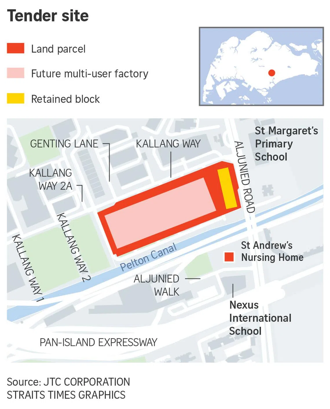 On June 25, JTC launched a tender for a 4.41ha site in Kallang Way, where a multi-user food manufacturing factory is to be built alongside the retained block.
