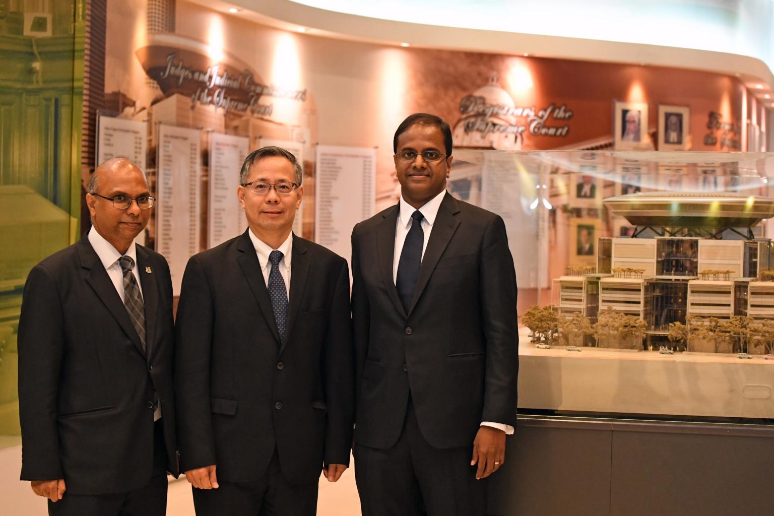 Dean of Singapore Judicial College Foo Chee Hock (centre) was appointed as a Honorary Senior Counsel, while Law Society president and Rajah & Tann partner Gregory Vijayendran (left), and Mr Siraj Omar, who heads the Commercial Disputes practice at Premier Law LLC, were appointed Senior Counsels on Jan 7, 2019.