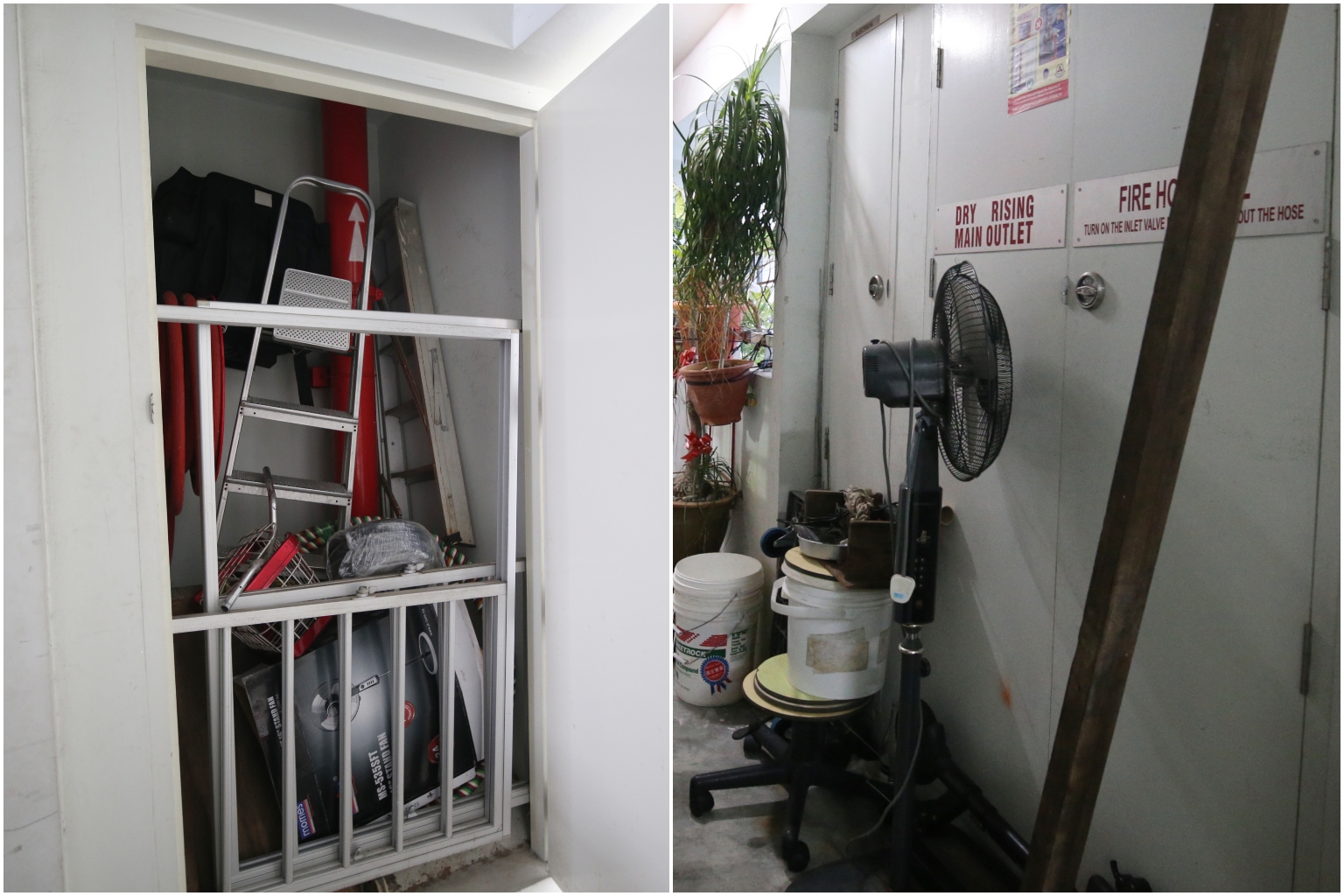 Chinese language newspaper Lianhe Wanbao reported on Friday that hose reel cabinets on 10 storeys across Block 422 and 423 and the carpark of Block 419 in Clementi Avenue 1 were being used to store items like mattresses, full-length mirrors, ladders and suitcases.