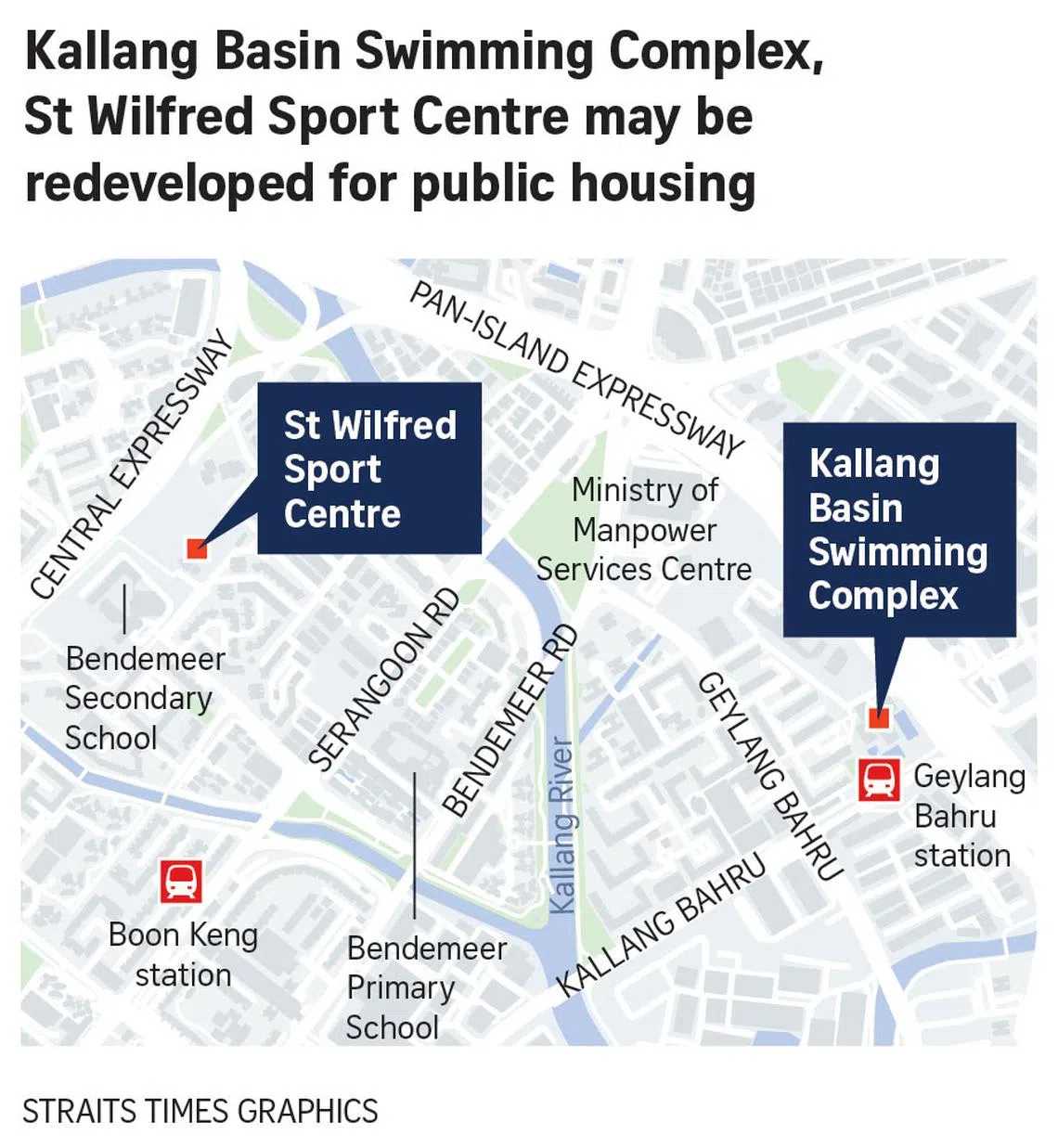 Kallang Basin Swimming Complex, St Wilfred Sport Centre to close; sites may be used for public housing