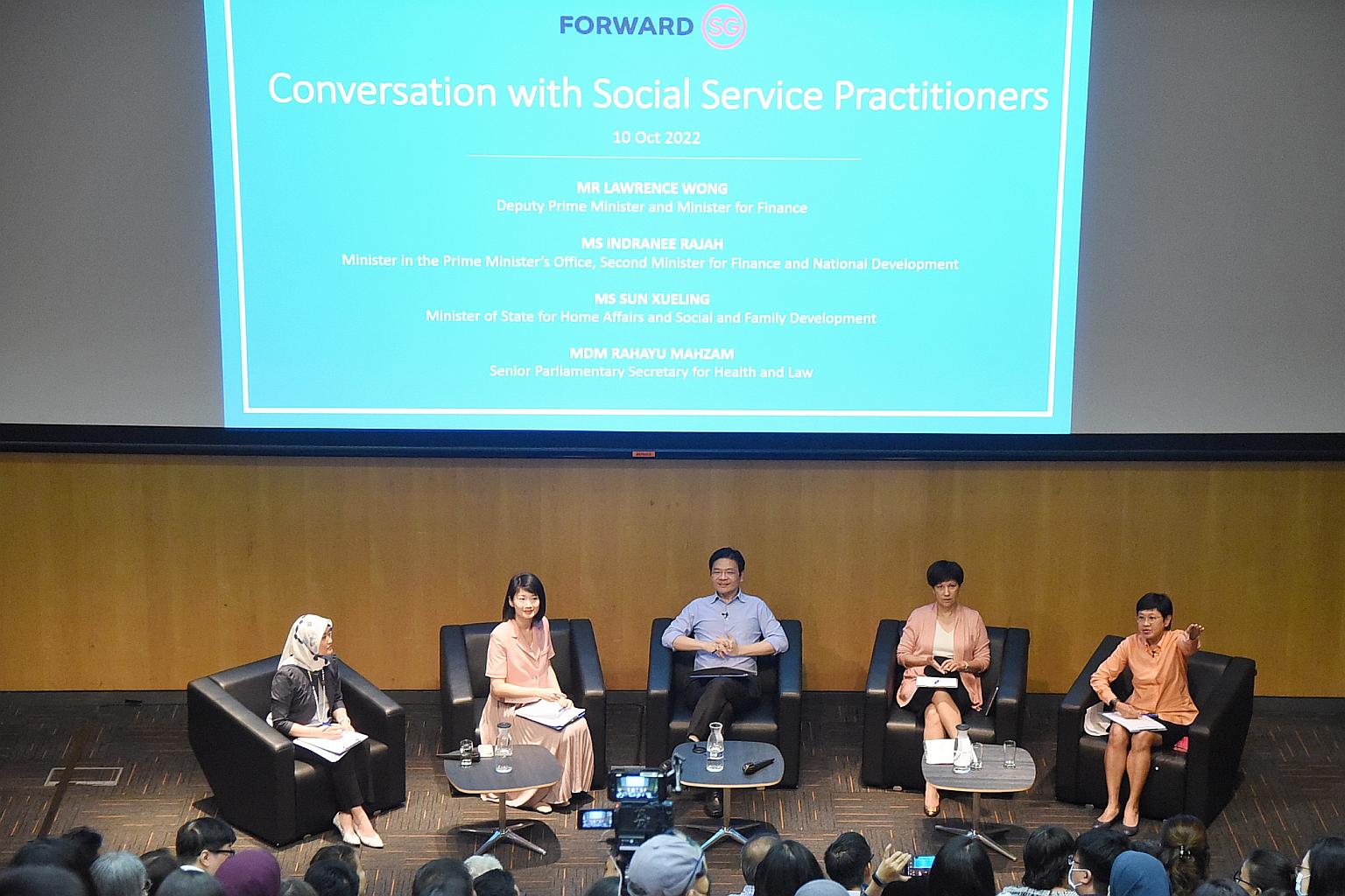 The panellists were Deputy Prime Minister Lawrence Wong, Senior Parliamentary Secretary for Law Rahayu Mahzam, Minister of State for Social and Family Development Sun Xueling, Minister in the Prime Minister's Office Indranee Rajah and Ms Ang Bee Lian, the Ministry of Social and Family Development's director-general of social welfare.