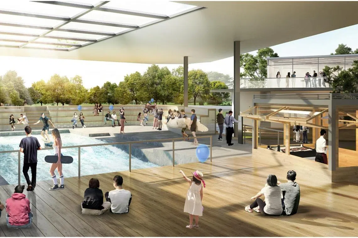 The facility will include an indoor surfing simulator and a skatepark.