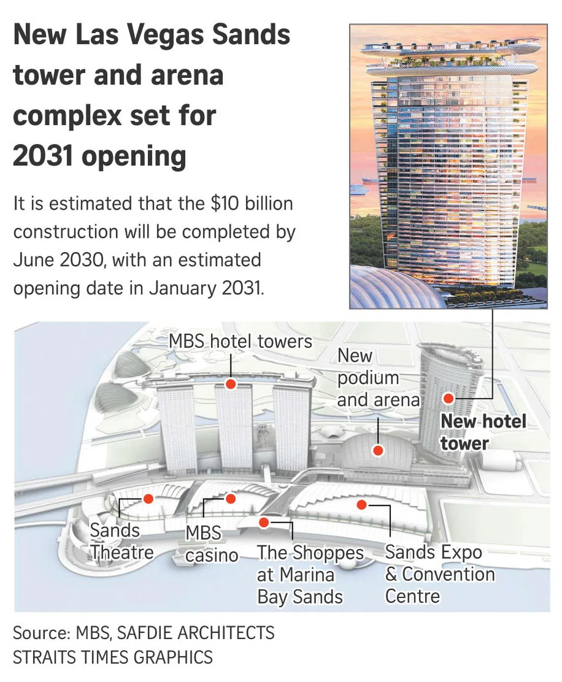 SINGAPORE - Singapore’s skyline will get a soaring new addition come 2030 when Las Vegas Sands’ US$8 billion (S$10.3 billion) new hotel tower is completed.