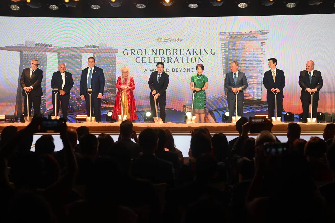 PM Wong was addressing about 200 guests gathered at the ground-breaking site next to Marina Bay Sands’ (MBS’) Hotel Tower 1. They included Las Vegas Sands co-founder Miriam Adelson, chairman and chief executive officer Robert Goldstein, and president and chief operating officer Patrick Dumont.