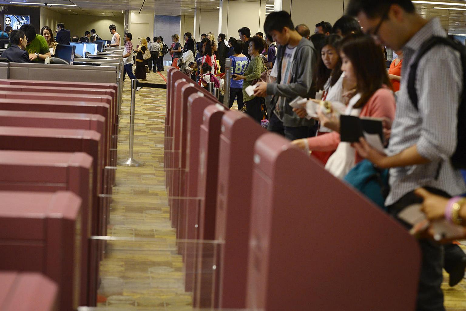 Travellers clearing customs and immigration at Changi Airport in Singapore in 2014.