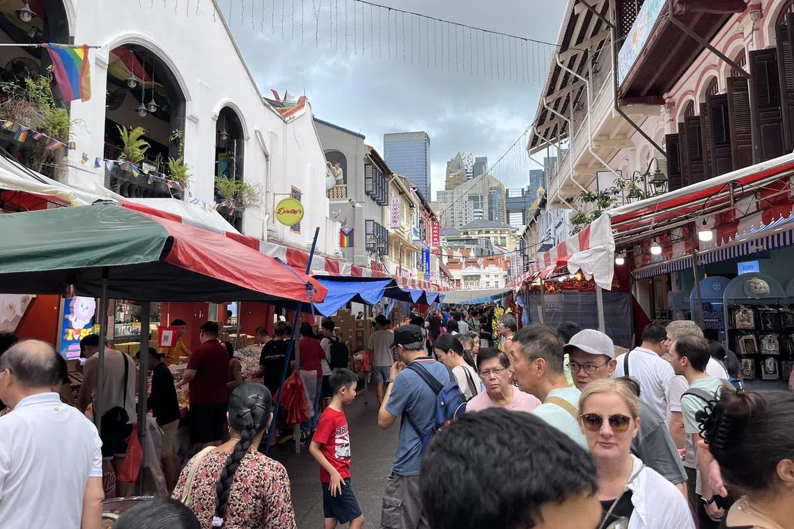 After persistent rain failed to materialise on Jan 18, large crowds were seen in Pagoda Street and Temple Street when ST visited the Chinatown Street Bazaar at 3.30pm.