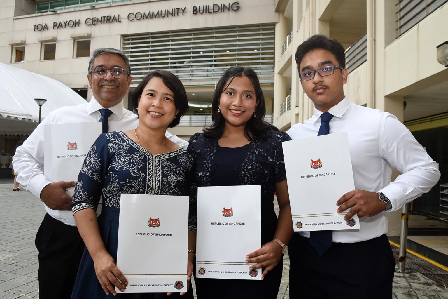 On Saturday, the 53-year-old Malaysian lawyer, his Filipino wife, 46, and two children, aged 16 and 18, were among 131 people who received their citizenship certificates at a ceremony in Toa Payoh Central Community Club.