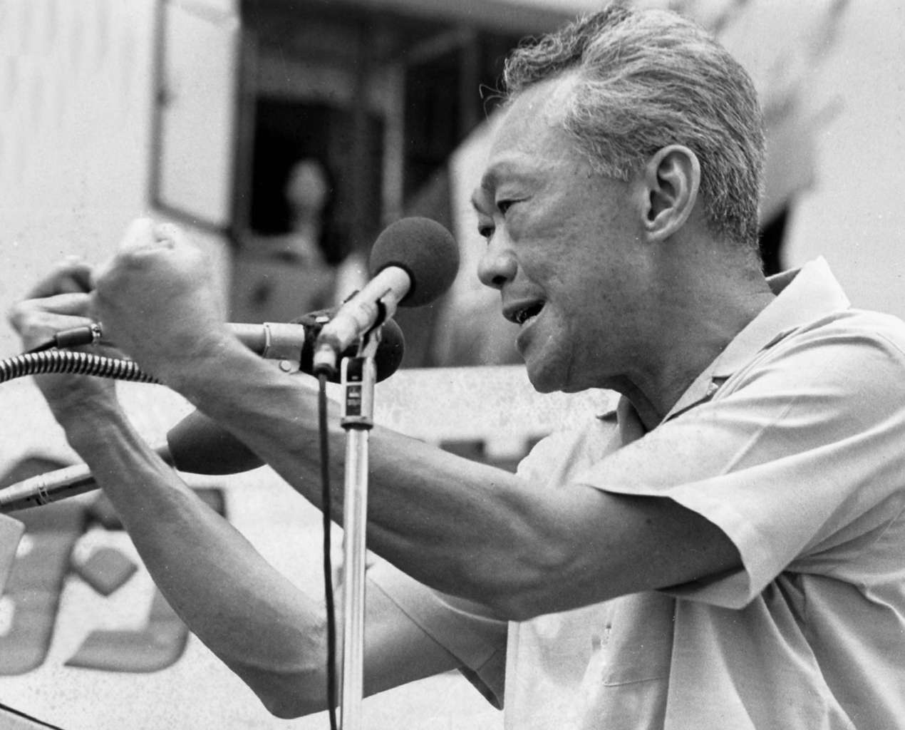 Mr Lee Kuan Yew speaking at a PAP rally in 1980.