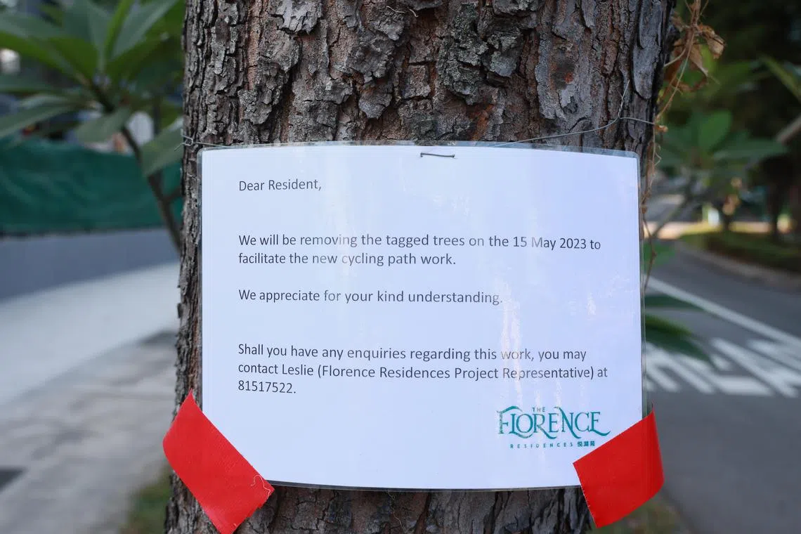 “In May 2023, the developer submitted a new proposal to remove additional trees along Florence Road to enhance the cycling path and associated lighting. The developer had put up signs on these trees to inform residents about their proposed plans,” Mr Oh added.