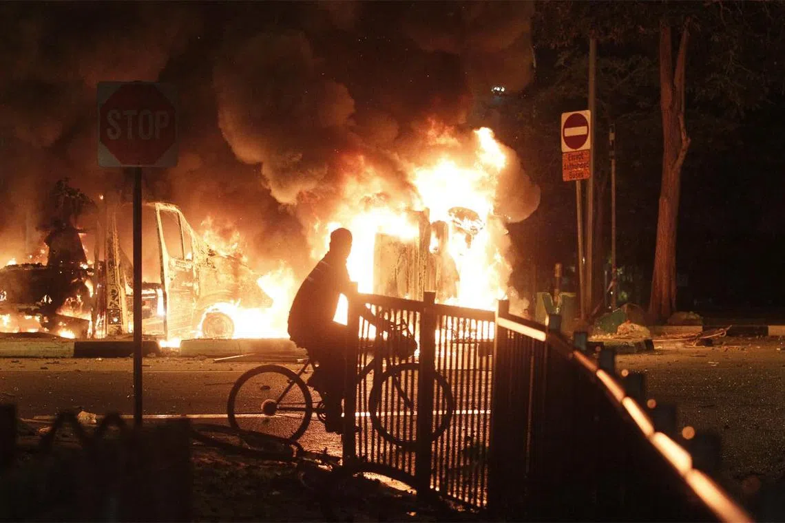 “I saw many angry rioters throwing rocks at the bus and ambulance before overturning and setting fire to some of the vehicles,” said the retiree, who lives in the same block as Mr Purushothaman and has been living in the area for 43 years.