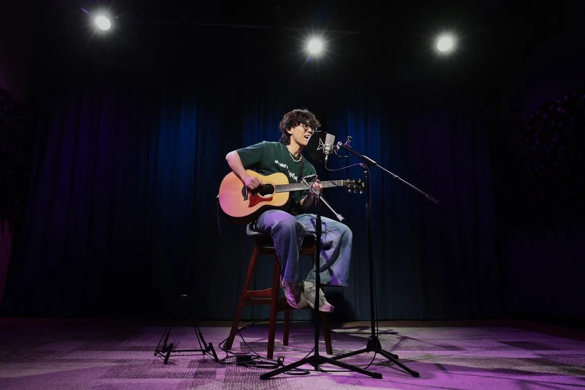 Singer-songwriter Hongjoin performing at SPH Media’s Studio+65 for ST’s Music Lab podcast.