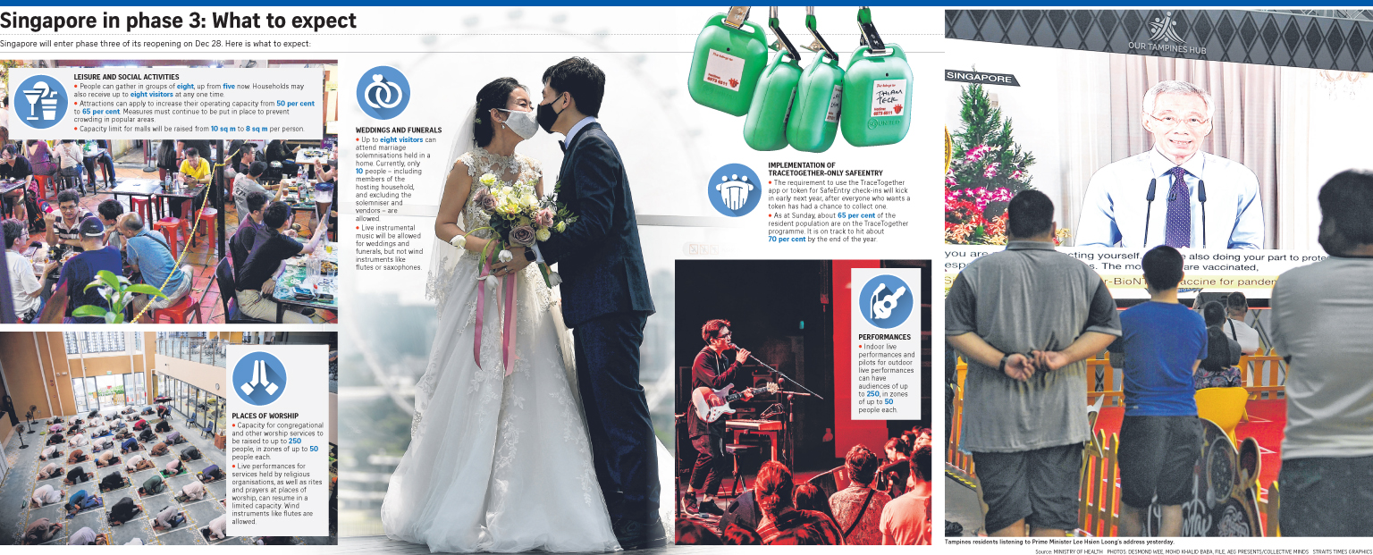 Speaking at a virtual press conference yesterday, Education Minister Lawrence Wong said Singapore is also prepared to allow further relaxation of measures - be it for domestic activities or border control - further along phase three of its reopening.