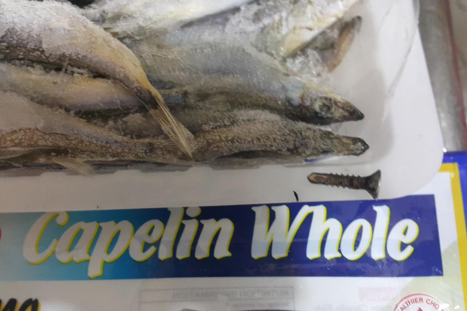 SINGAPORE - A local seafood distributor recalled its stock of frozen whole shishamo at a FairPrice outlet in Tampines Hub on Monday (Oct 1), after a customer complained that he found a screw in a pack of the fish.