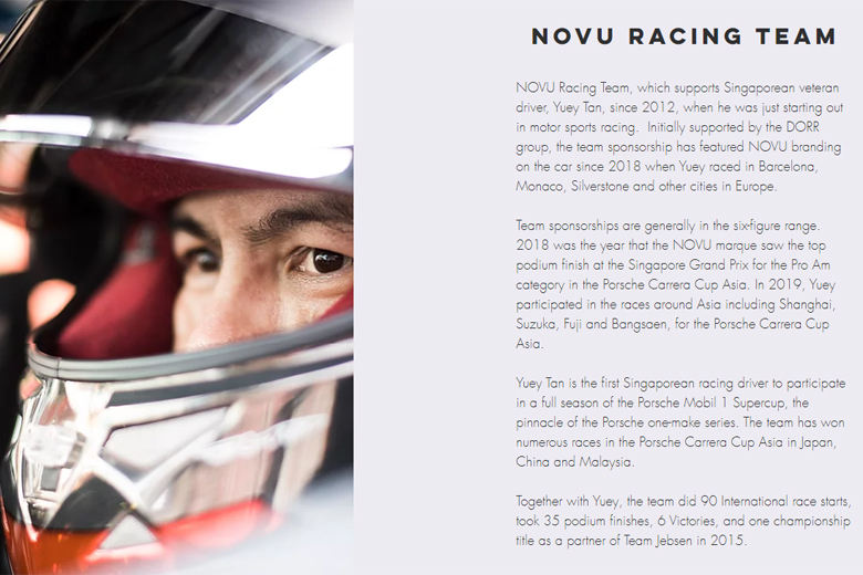 This includes the Novu Racing Team which the foundation website said had supported Singaporean race-car driver Yuey Tan since 2012.