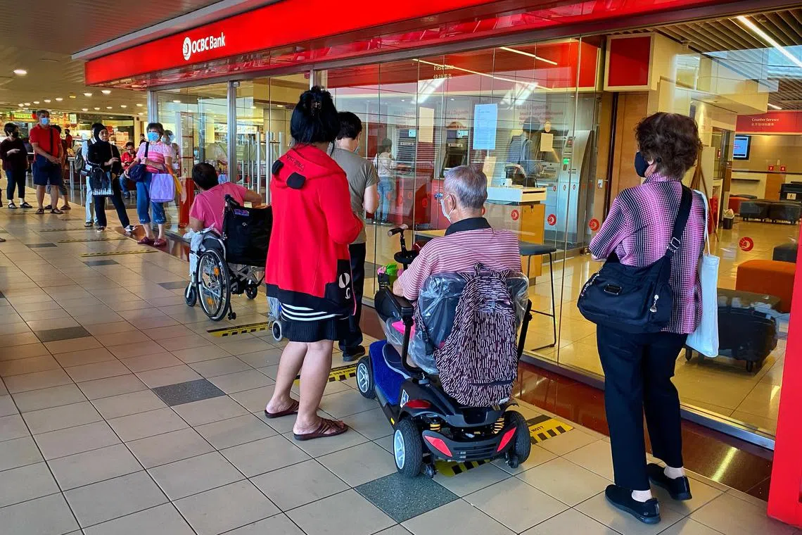 Those who wish to do so must pre-book through the online reservation systems of DBS, OCBC and UOB to minimise the likelihood of overcrowding at bank branches.