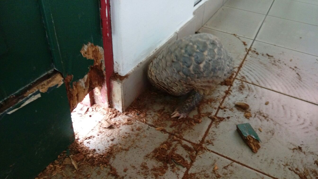 A young pangolin got lost in a common room at Hall of Residence 7. It was later rescued and sent back to the wild that day.