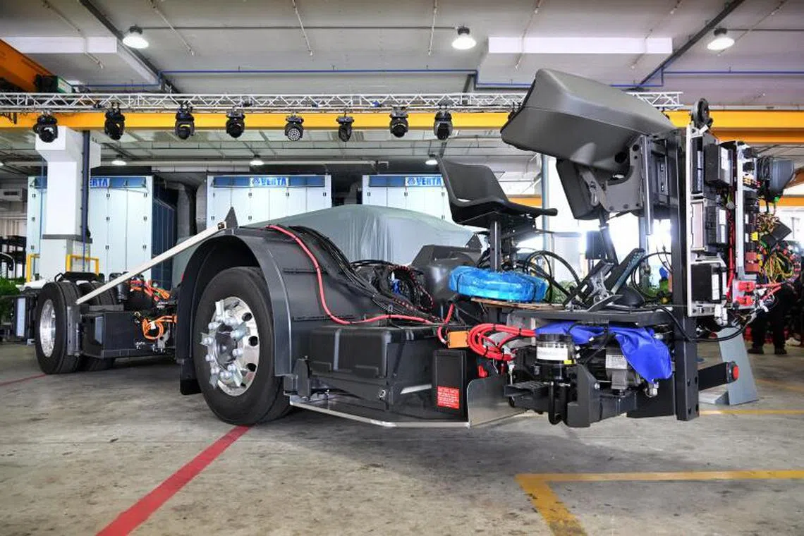 The chassis of the Volvo BZL-SC Neustar City fully electric, three-door, single-decker bus.