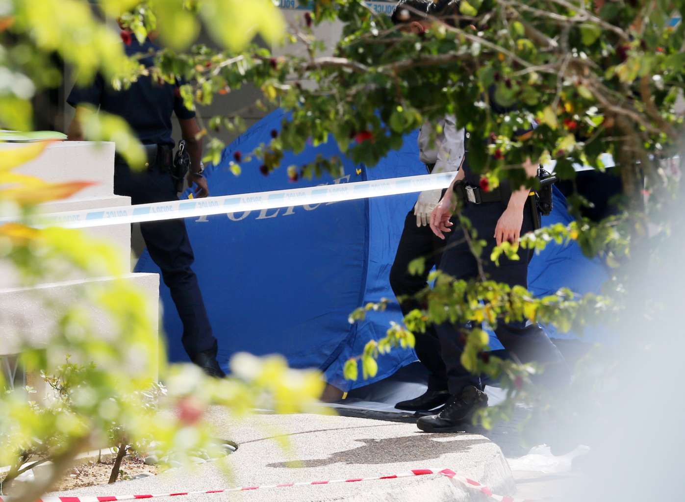 A police cordon is seen around the site where Ms Palwinder Kaur, a maid, jumped to her death after attacking her employer with a hammer, on Jan 19, 2015.