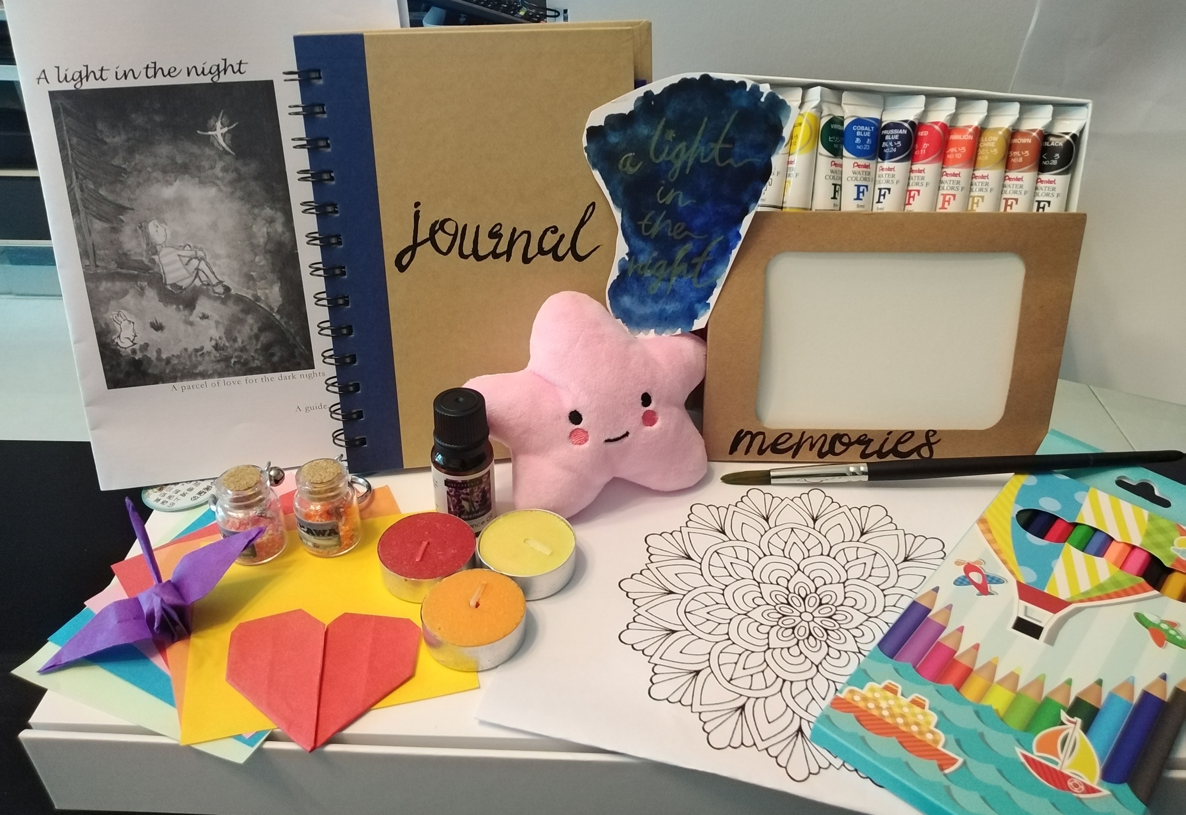 The care packs included art supplies, a journal, scented candles, essential oils, a soft toy and a specially created guidebook on how to use the items, along with testimonies and a resource guide. Each pack cost about $12 to put together.