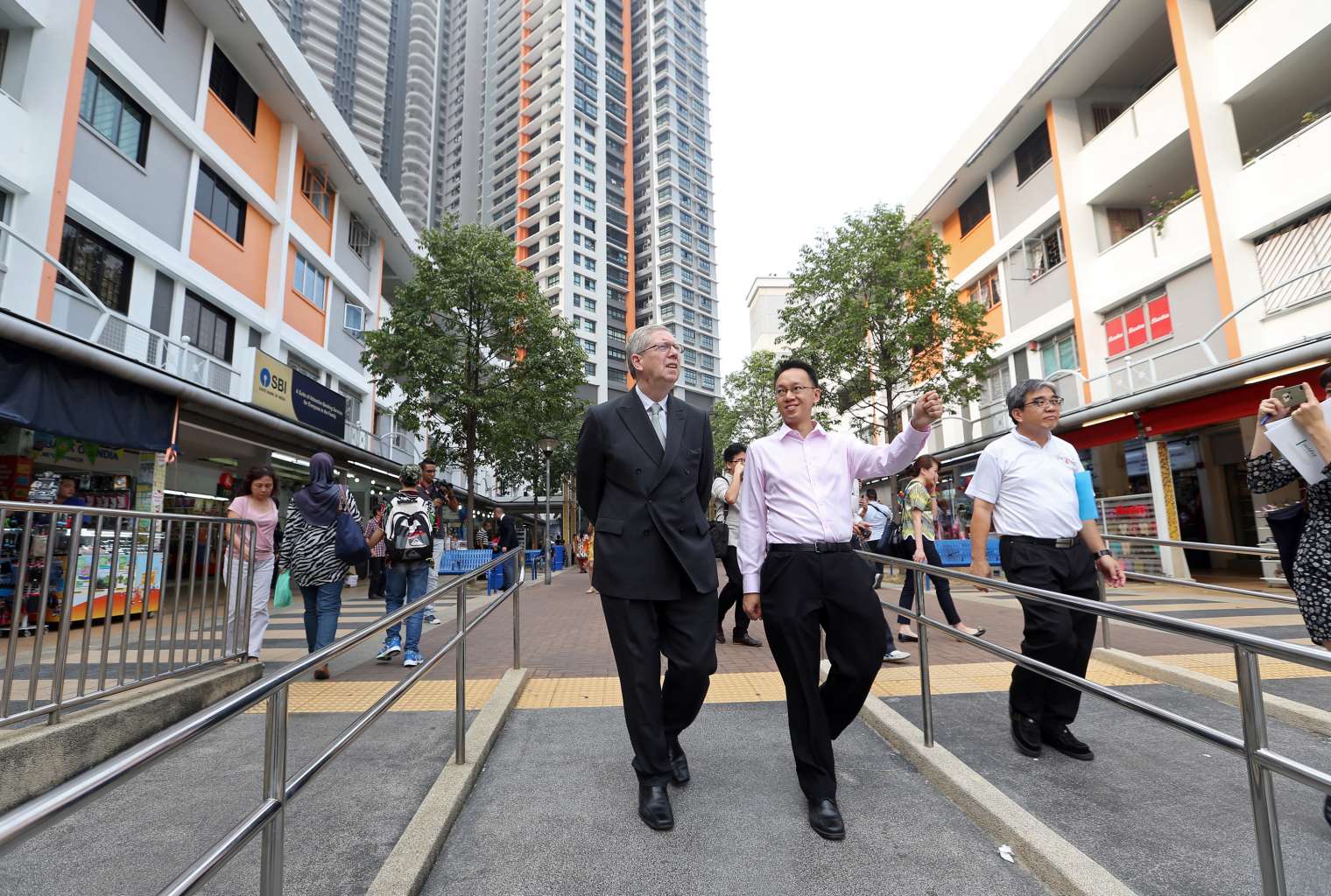 During the hour-long tour, Sir David visited the Clementi bus interchange, Clementi Mall, a four-room HDB flat and the Clementi Market and Food Centre.
