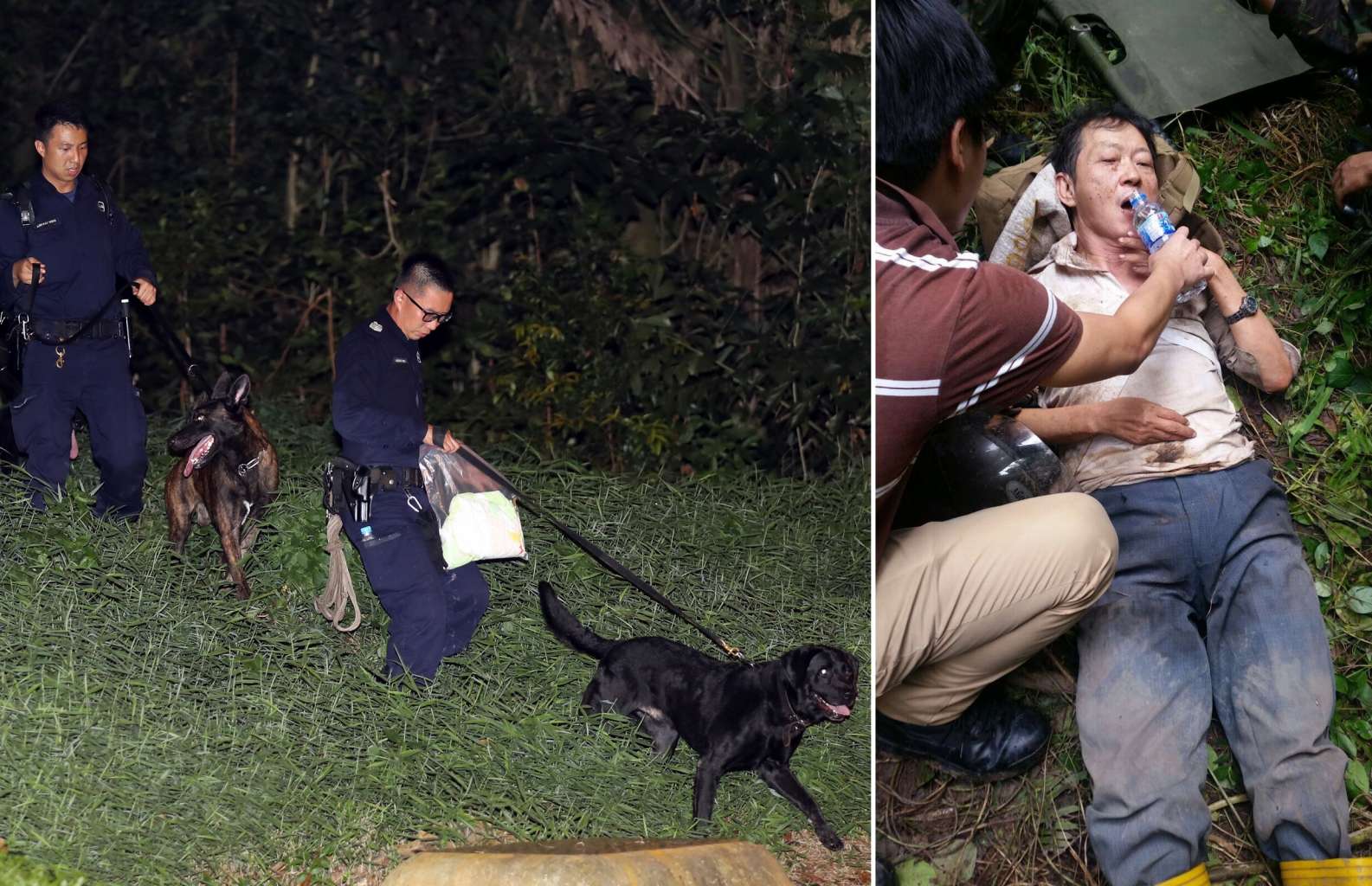 There were at least five police vehicles when Wanbao arrived at the scene on Sunday night. Police officers were seen leading dogs on the search.