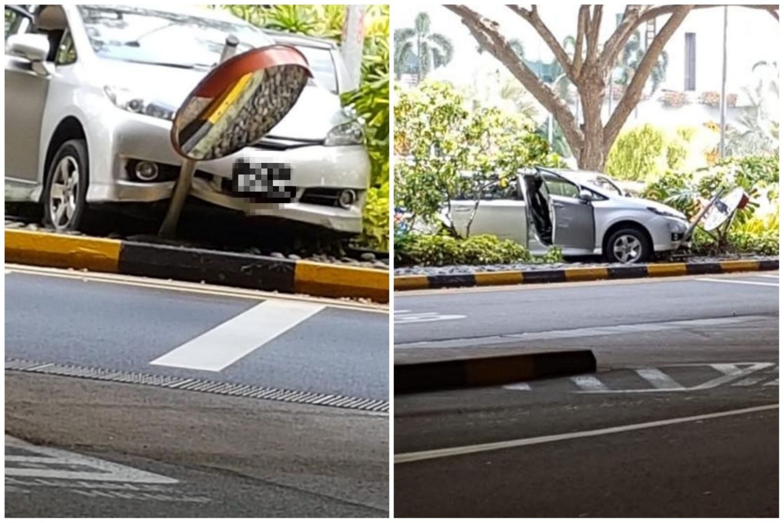 Photos of the accident circulating online showed a Singapore-registered car that had crashed into a convex traffic mirror on a road divider at Terminal 2.