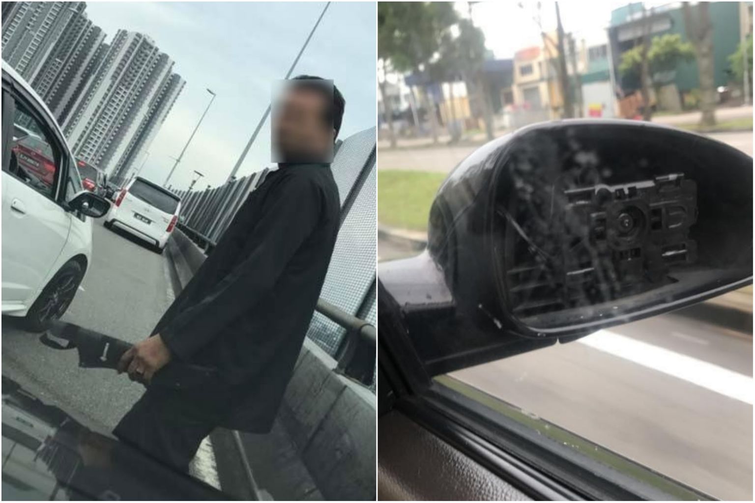 Photos posted on Facebook showed the man holding a covered weapon along the Causeway. He also damaged another driver's side mirrors.