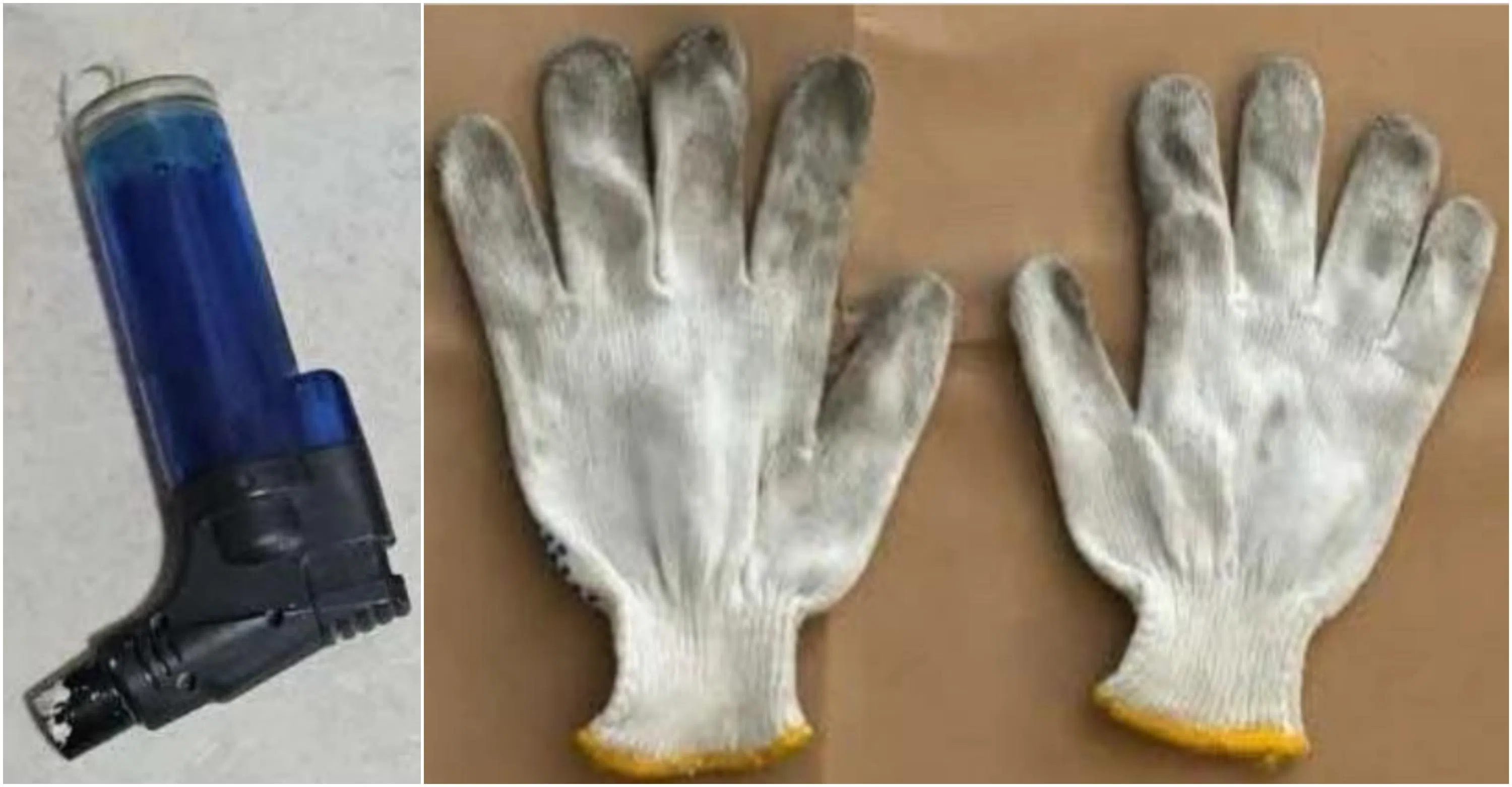 A lighter and pair of gloves were seized as case exhibits.