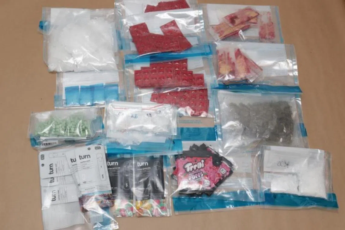 Upon searching the car, officers found about 531g of Ice, 126g of ketamine, 107g of cannabis, 100g of Ecstasy, 370 Erimin-5 tablets and 139g of cannabis-laced gummies.