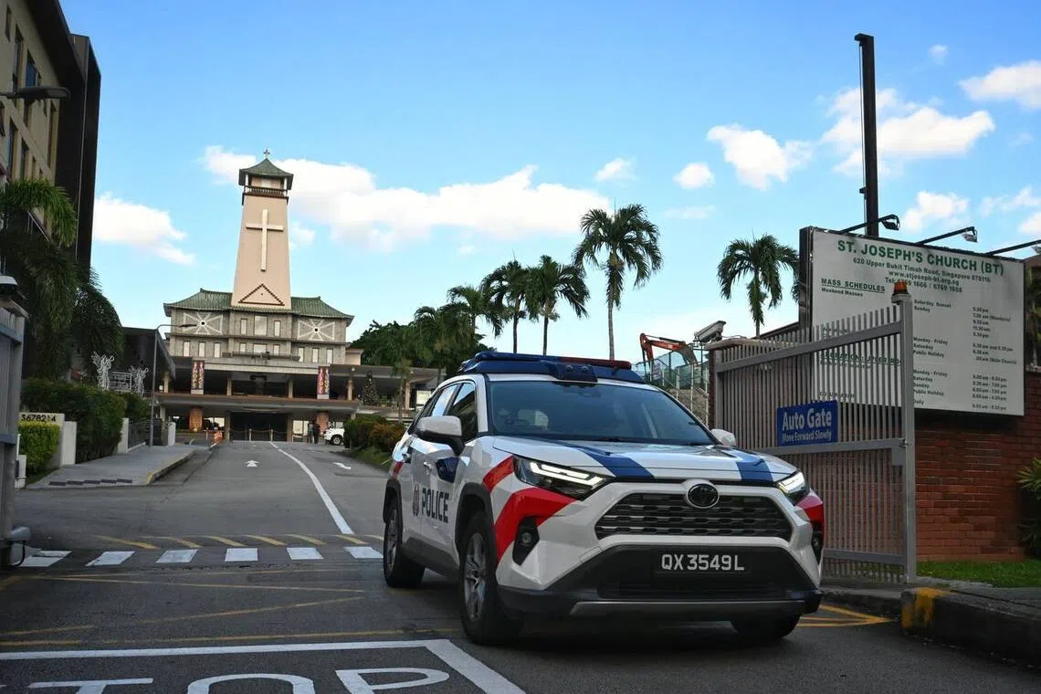 At about 9.15am, several police and Singapore Civil Defence Force (SCDF) vehicles were seen entering the church premises, along with plainclothes officers.
