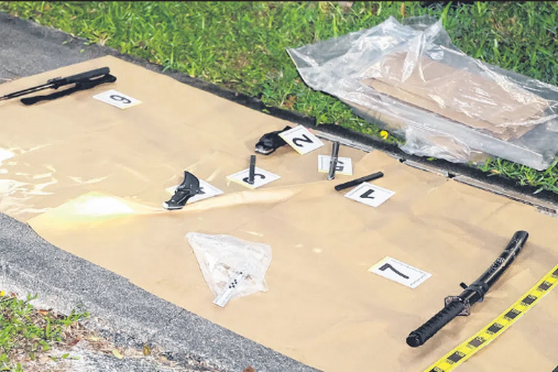 According to Chinese-language newspaper Shin Min Daily News, the weapons seized by the police included a 75cm-long samurai sword, a dagger and a machete.